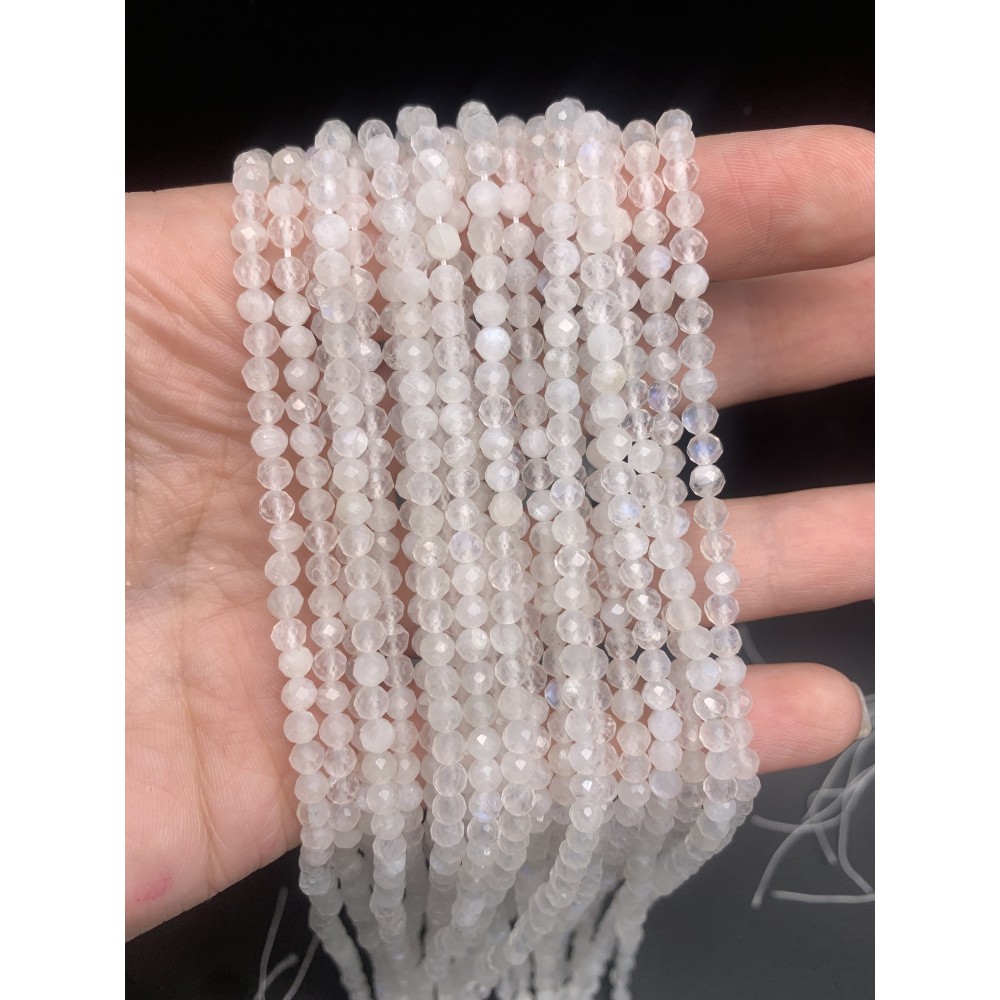 Каменные бусины, Лунный камень, шарик огранка, 4 мм, длина нити 38 см
