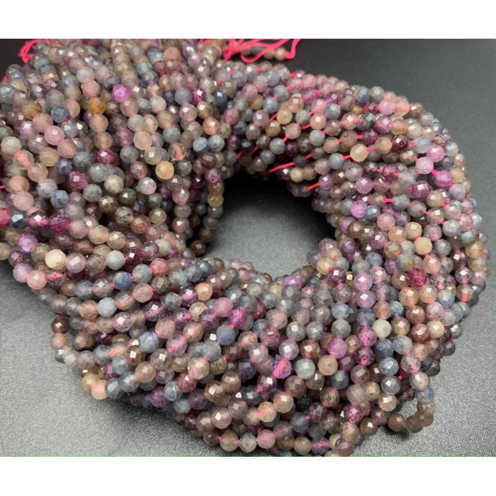 • Каменные бусины, Микс Корундов, (Сапфир, Рубин, Падпараджа, Наждак), люкс, шарик огранка, 4 мм, нить 38 см
