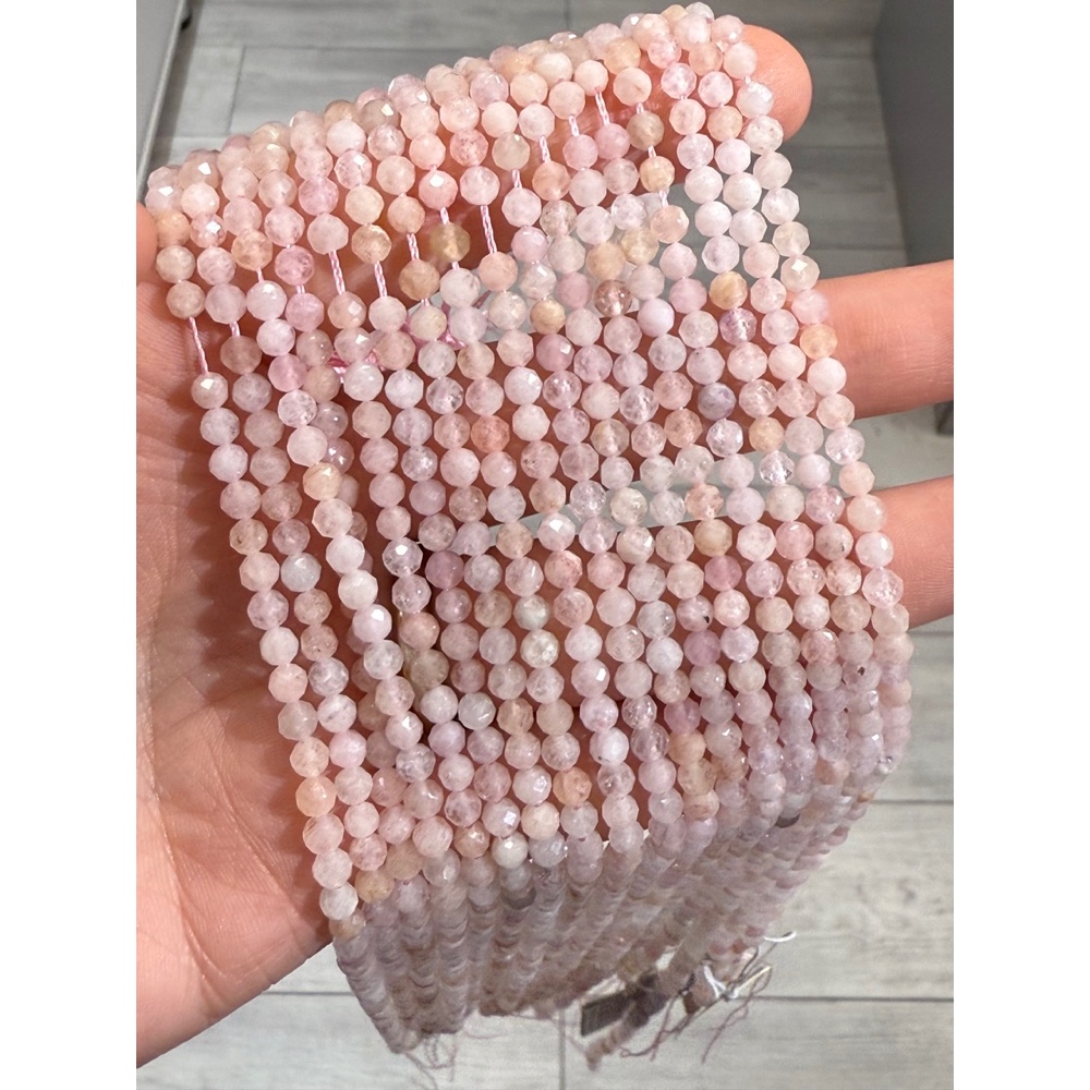 Каменные бусины, Морганит, розовый Берилл, воробьевит, шарик огранка, 4 мм, длина нити 38 см