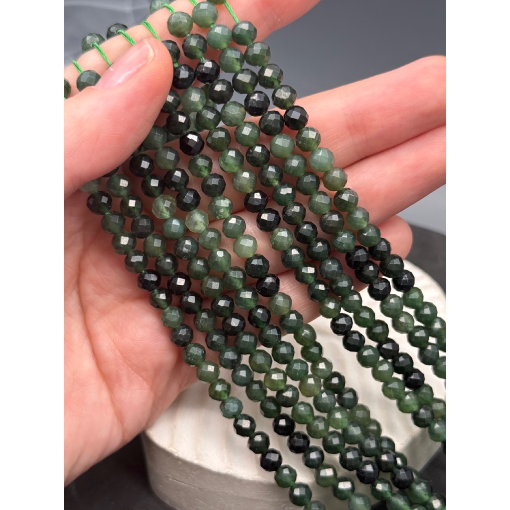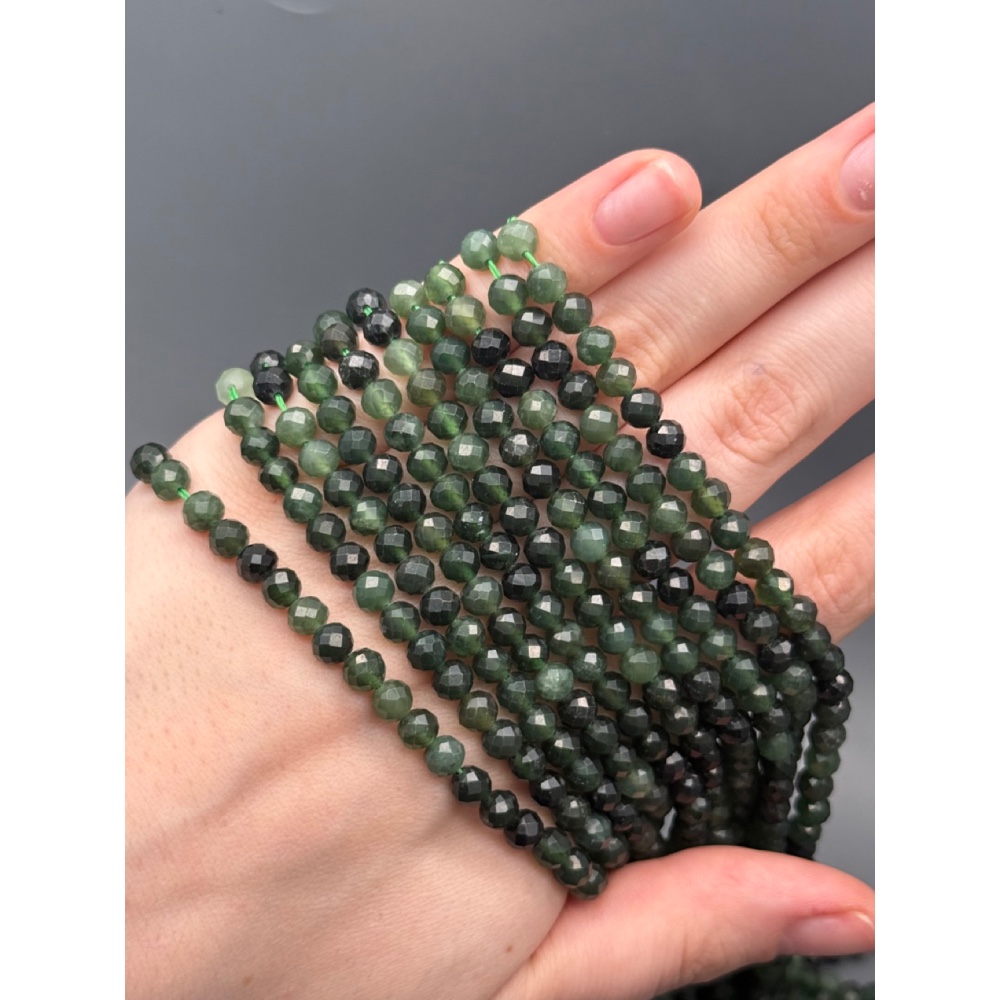 Теги: Каменные бусины, Нефрит (Россия), шарик, огранка, 5, 5 мм, длина нити 38 см, 20879, Бусины в огранке