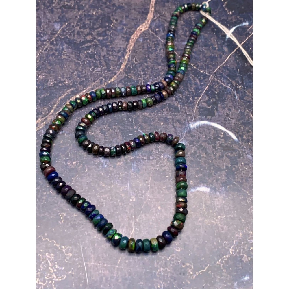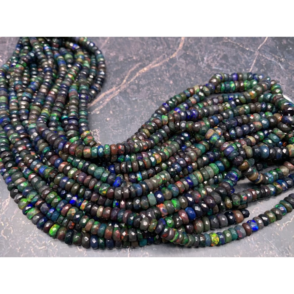 Каменные бусины, Опал, черный Эфиопский, экстра люкс, рондель огранка, переходный размер от 4х2 мм до 3х2 мм, нить 40 см