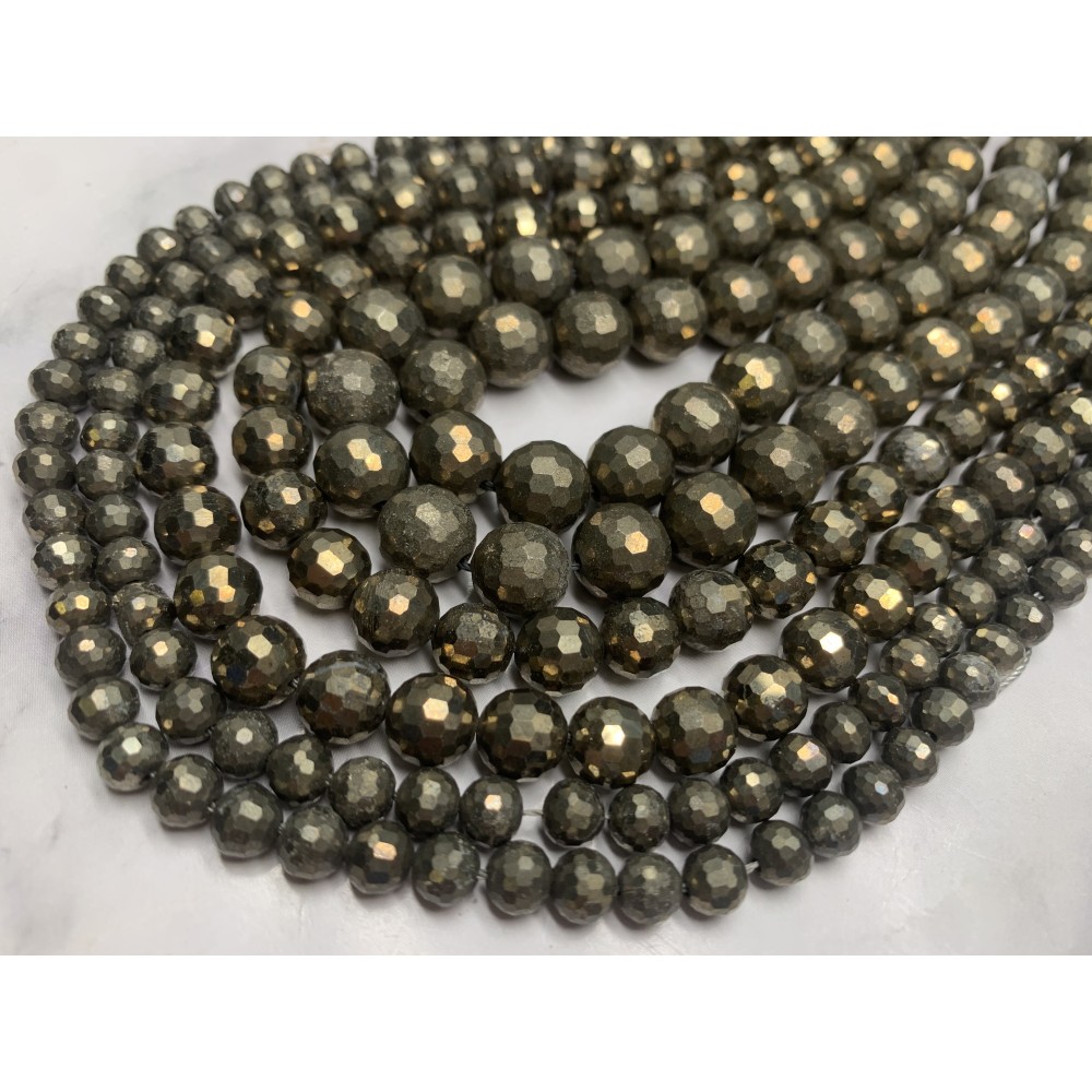 • Каменные бусины, Пирит, огранка, шарик 8 мм, длина нити 38 см
