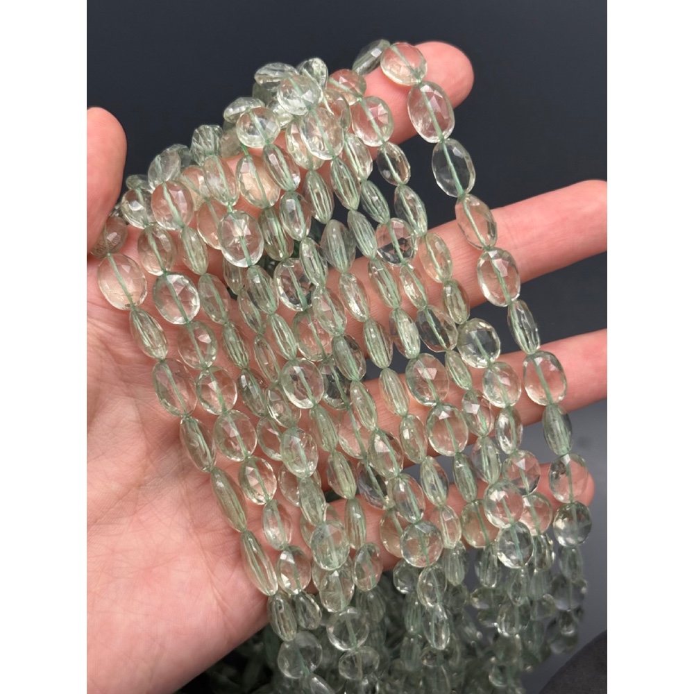 Теги: Каменные бусины, Празиолит, зеленый кварц, экстра люкс, овал, огранка, размер ~10х8х4 мм, длина нити 40 см, 20872, Фриформы Свободные формы