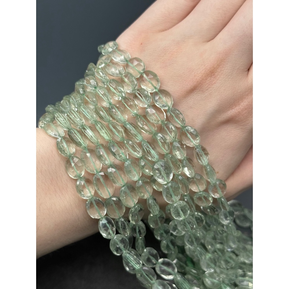 Каменные бусины, Празиолит, зеленый кварц, экстра люкс, овал, огранка, размер ~10х8х4 мм, длина нити 40 см 0 7500 ₽