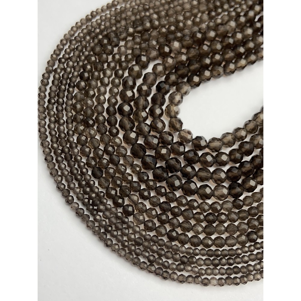 Каменные бусины, Раухтопаз, Дымчатый Кварц, шарик огранка, 3 мм, длина нити 38 см