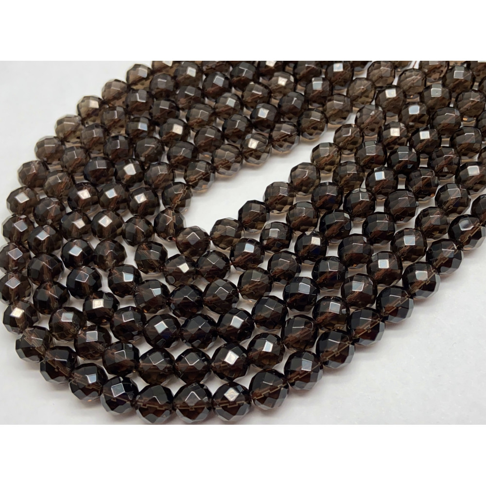 • Каменные бусины, Раухтопаз, Дымчатый Кварц, люкс, шарик огранка (рок), 8 мм, длина нити 38 см