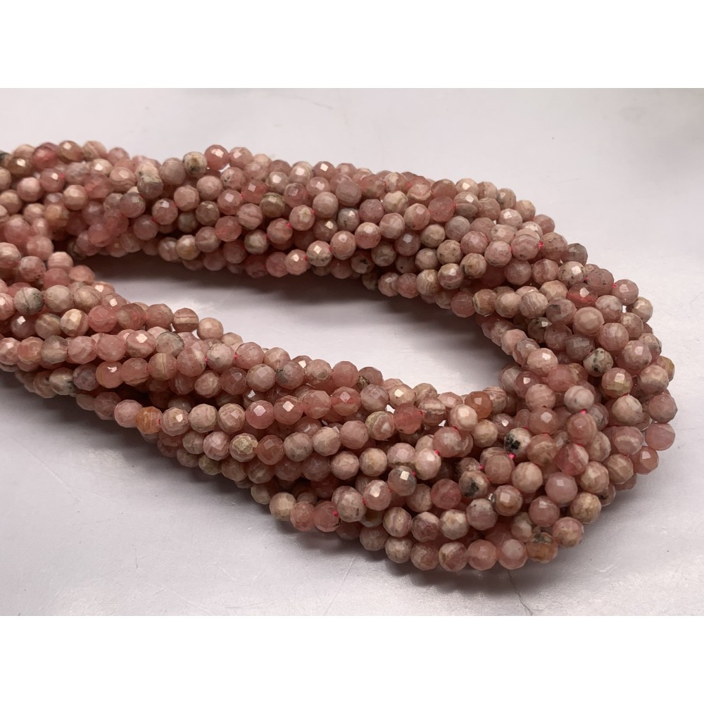 • Каменные бусины, Родохрозит, шарик огранка, 3,5 мм, длина нити 38 см