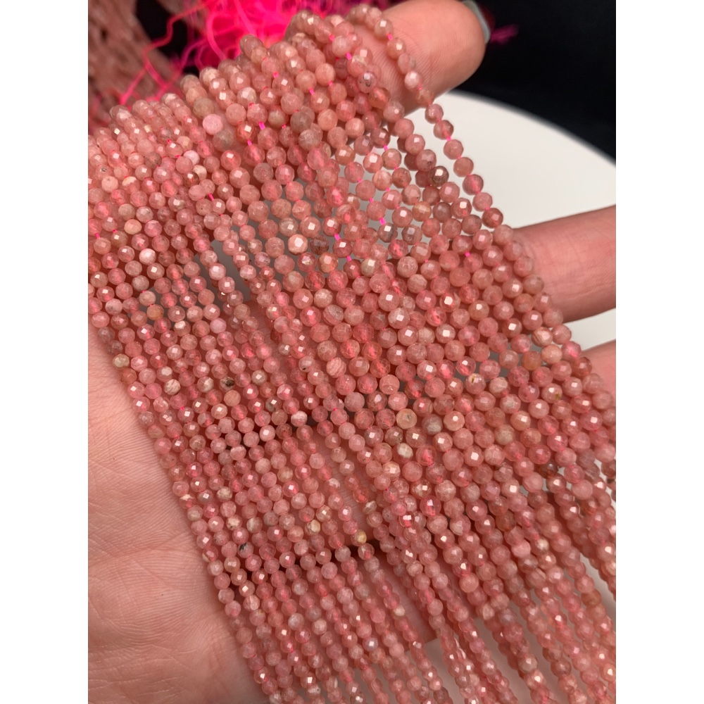 • Каменные бусины, Родохрозит, шарик огранка, 3 мм, длина нити 38 см