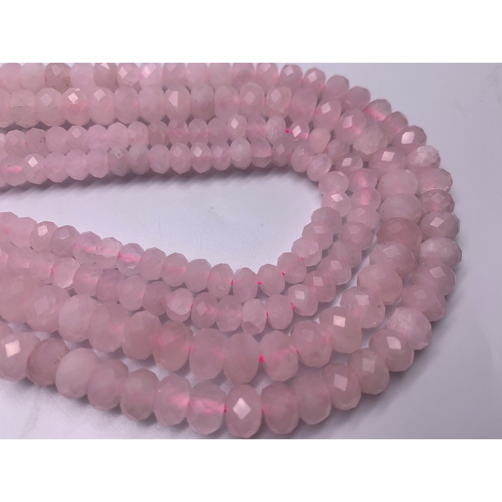 • Каменные бусины, Розовый кварц, огранка, рондель, 6x4 мм, длина нити 38 см