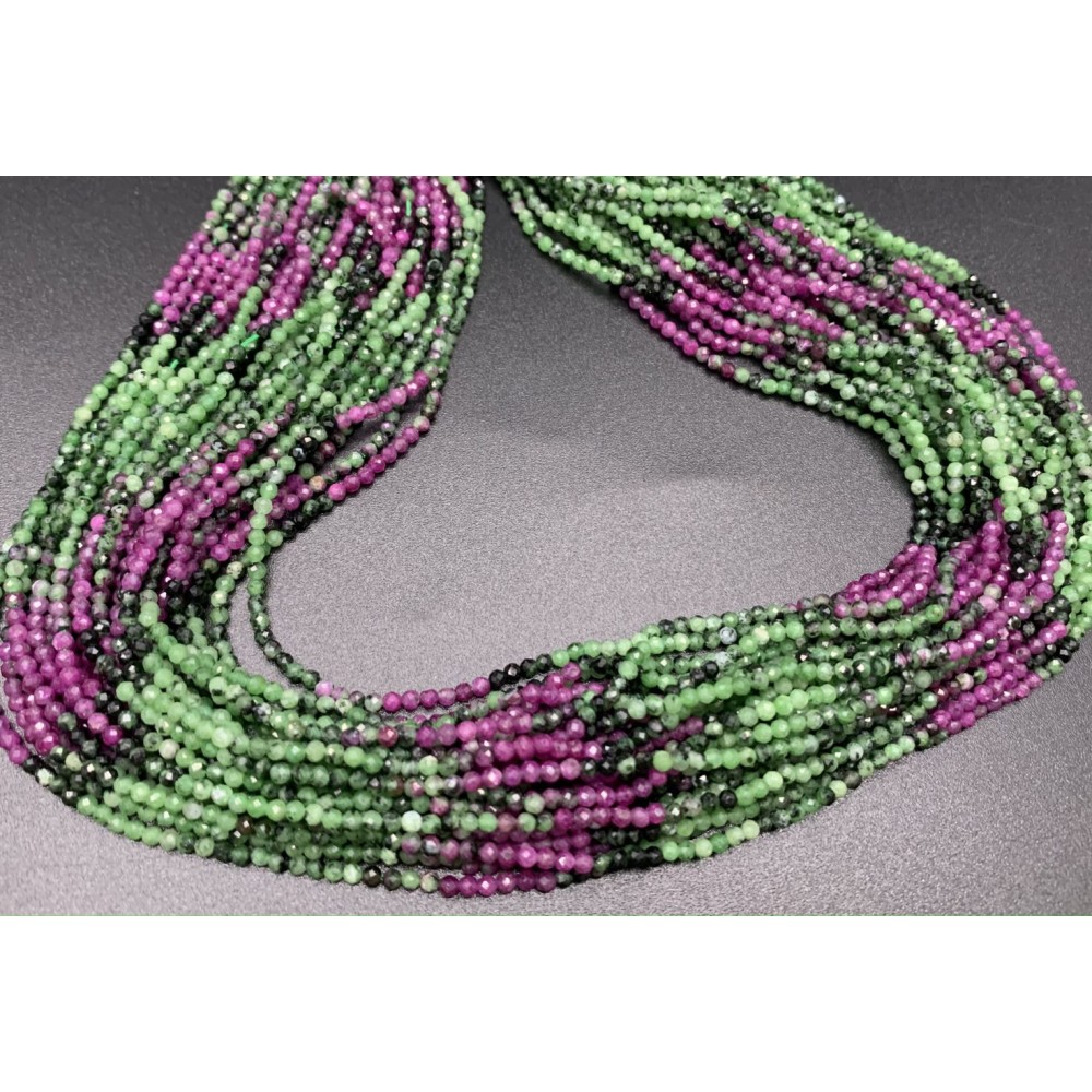 • Каменные бусины, Рубицоизит, люкс, подобранный, шарик огранка, 2 мм, длина нити 38 см