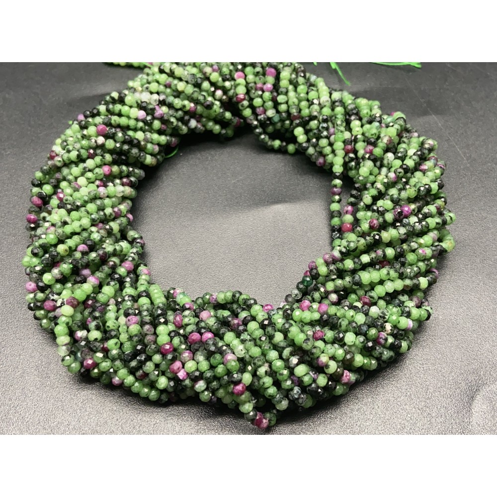 Каменные бусины, Рубицоизит, рондель, огранка, 3х2 мм, длина нити 38 см