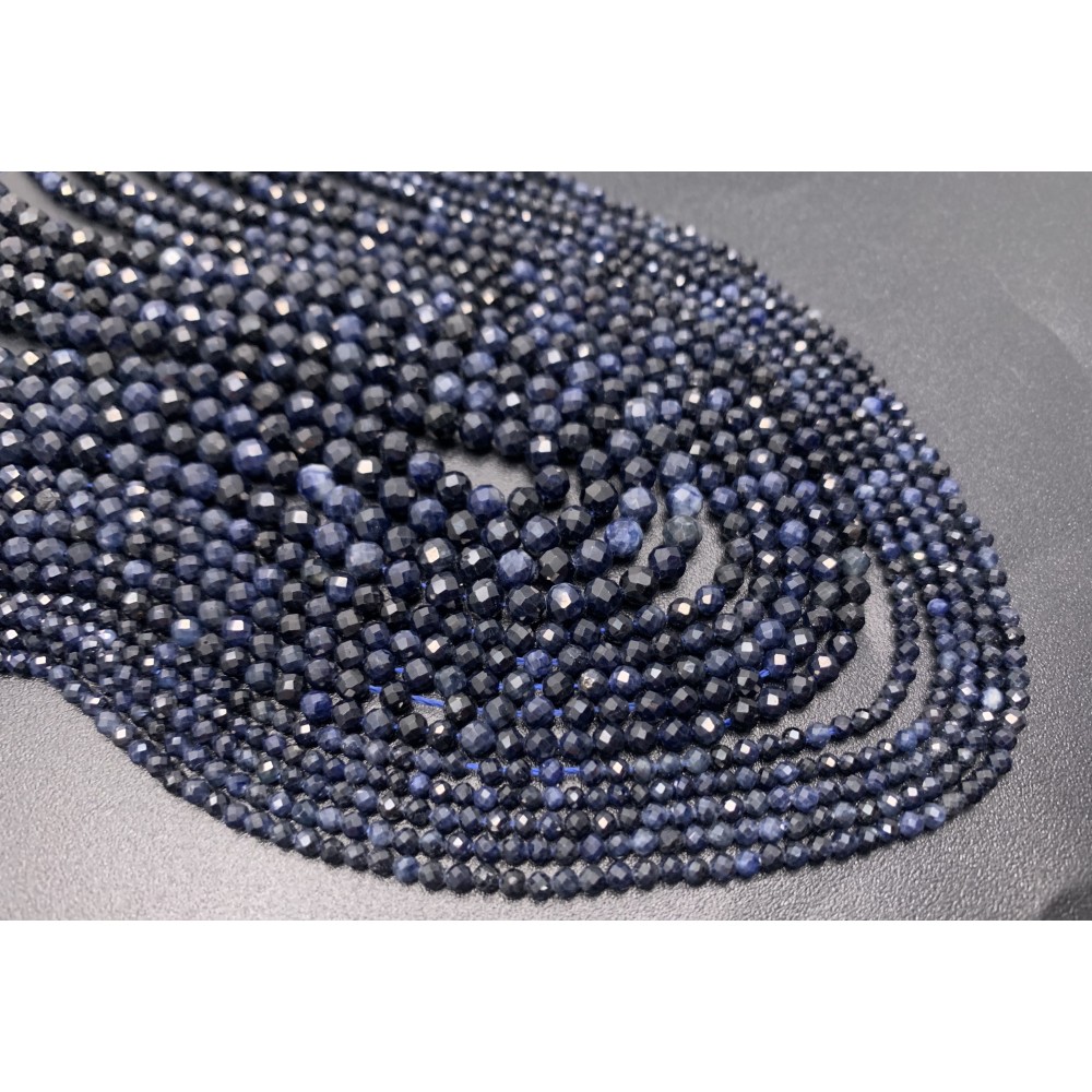 Каменные бусины, Сапфир, Корунд, люкс, шарик огранка, 3 мм, длина нити 38 см