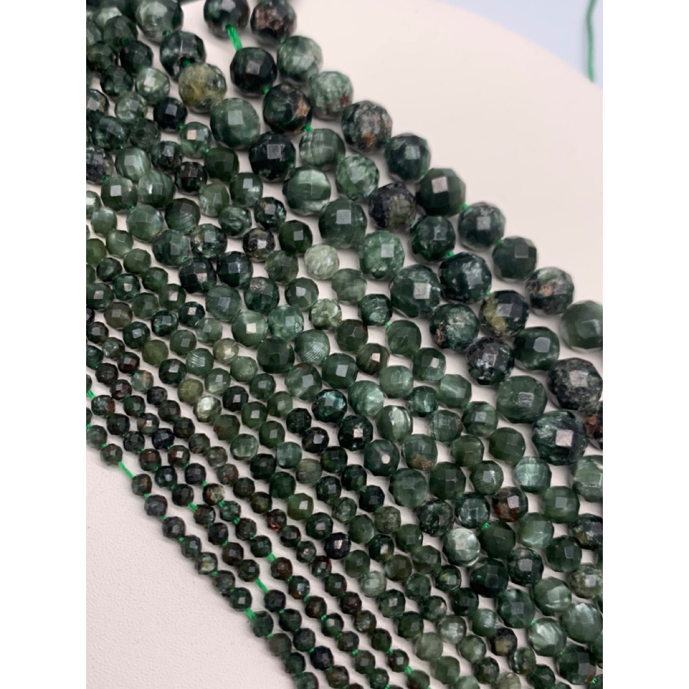 • Каменные бусины, Серафинит, Клинохлор, люкс, шарик, огранка, размер 3 мм, длина нити 38 см