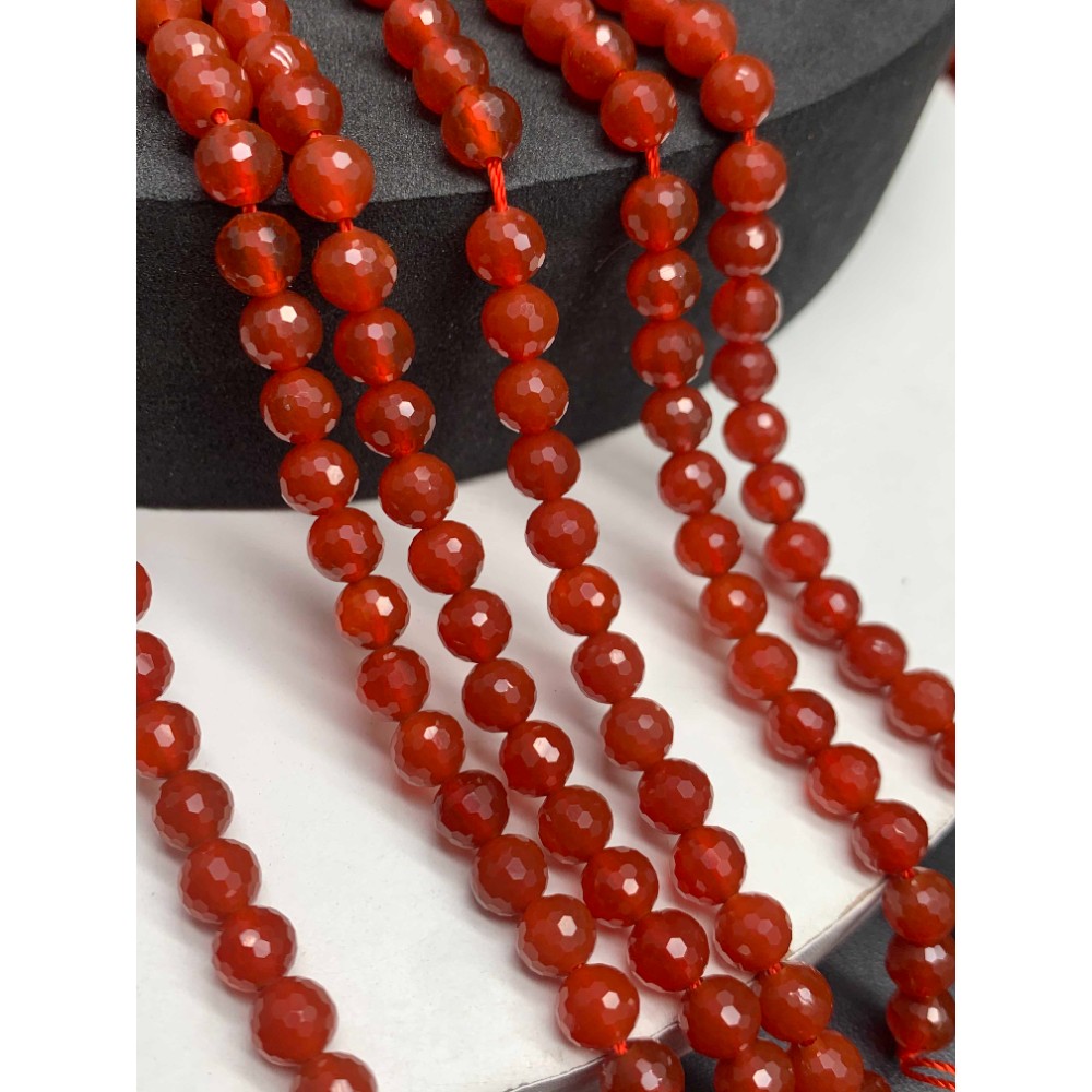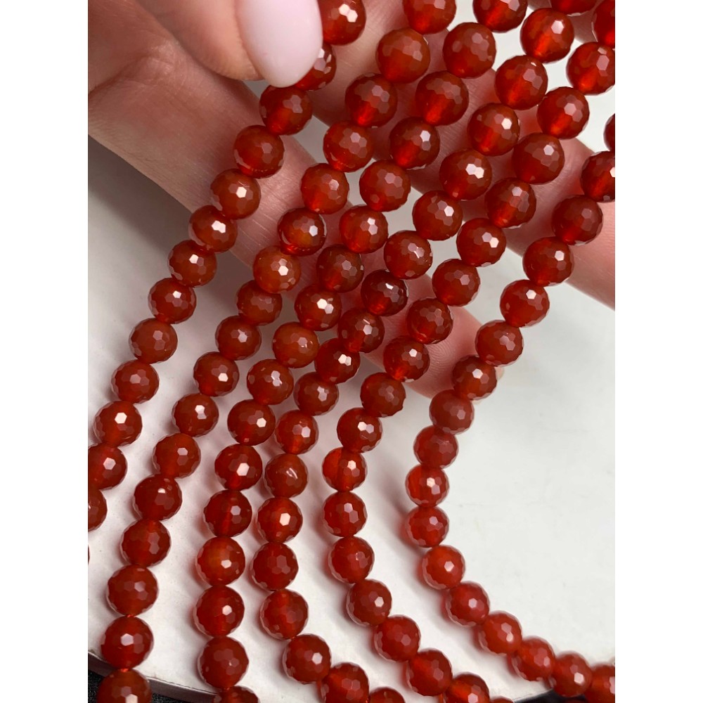 Каменные бусины, Сердолик (Карнеол), шарик, ювелирная огранка, 6 мм, длина нити 38 см