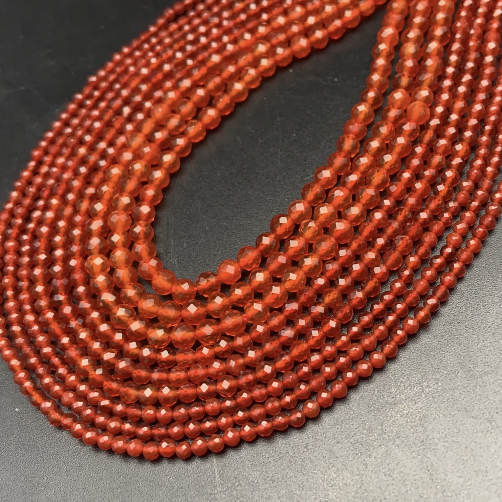 Каменные бусины, Сердолик (Карнеол), шарик огранка, 3 мм, длина нити 38 см
