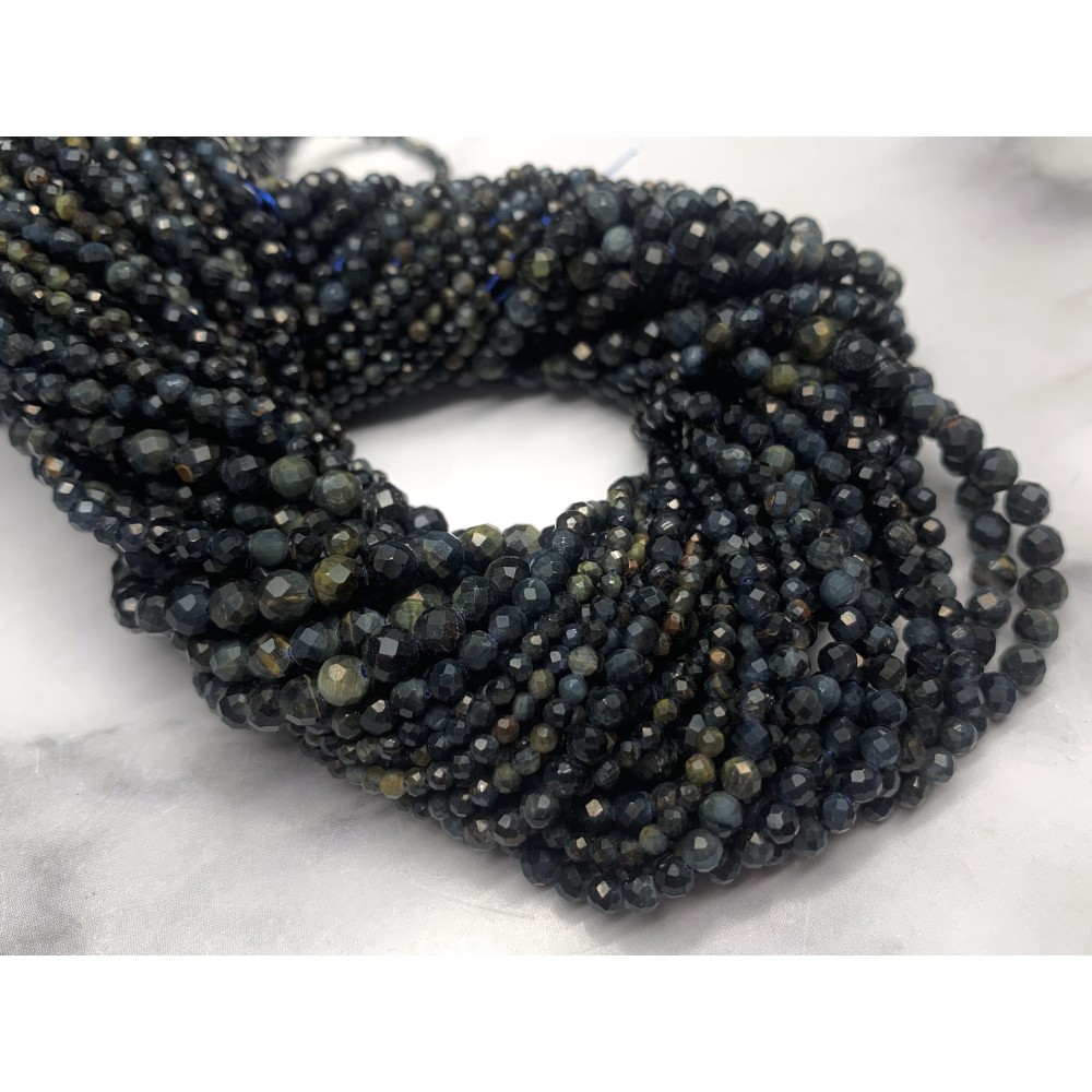 • Каменные бусины, Соколиный глаз, синий, шарик огранка, 2 мм, длина нити 38 см