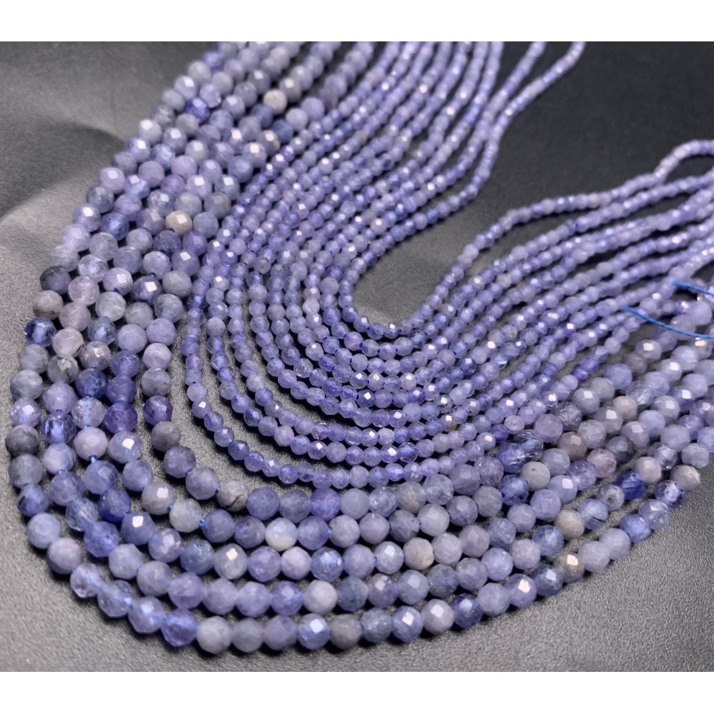 Каменные бусины, Танзанит, люкс, шарик огранка, 2 мм, длина нити 38 см