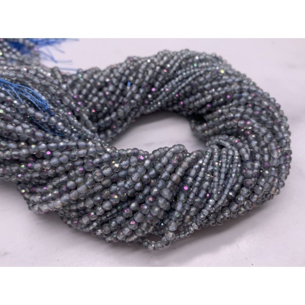 Каменные бусины, Топаз, серый, лабораторный, шарик, огранка, 1,8 мм, длина нити 38 см 0 470 ₽