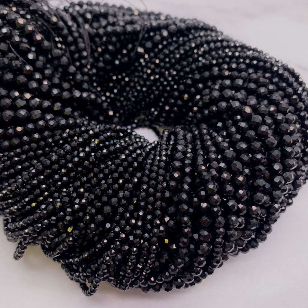 Теги: Каменные бусины, Турмалин черный, Шерл, шарик, огранка, 4-4, 5 мм, длина нити 38 см, 15357, Бусины в огранке 2-4 мм