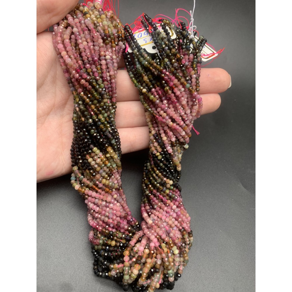 • Каменные бусины, Турмалин, рондель, огранка, 2х3 мм, длина нити 38 см