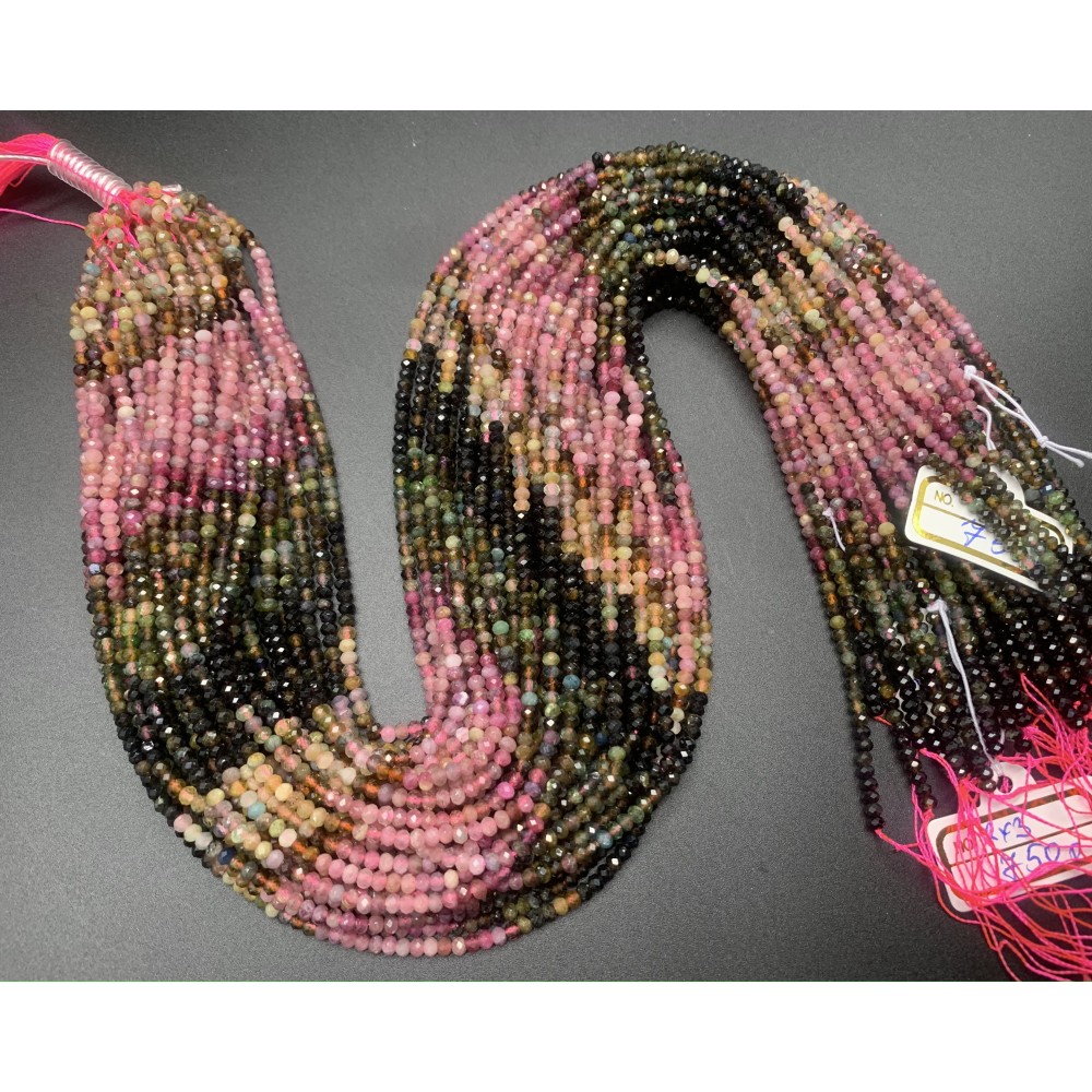 Каменные бусины, Турмалин, рондель, огранка, 2х3 мм, длина нити 38 см