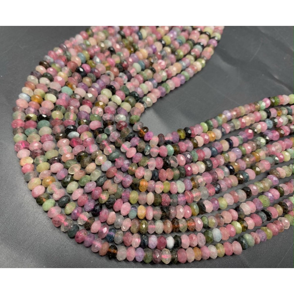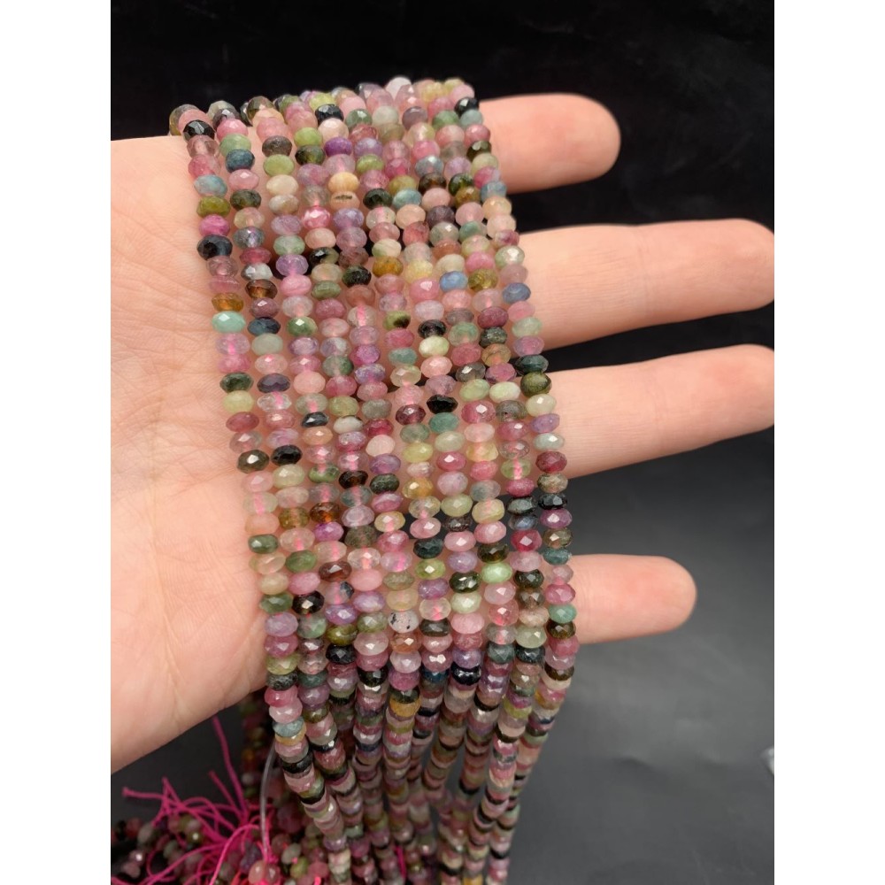 Каменные бусины, Турмалин, рондель, огранка, 3х5 мм, длина нити 38 см
