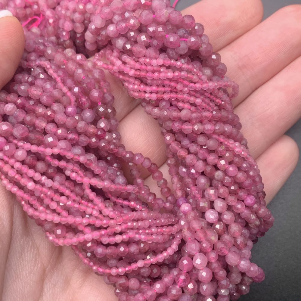 Каменные бусины, Турмалин розовый, Рубеллит, люкс, шарик огранка, 3 мм, длина нити 38 см 0 680 ₽