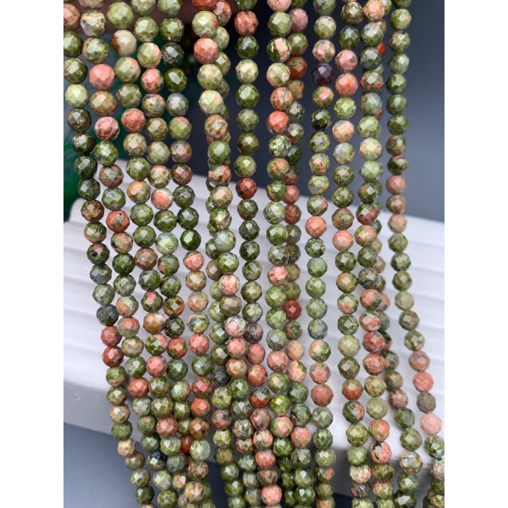 Каменные бусины, Унакит, огранка, шарик 3-3,5 мм, длина нити 38 см