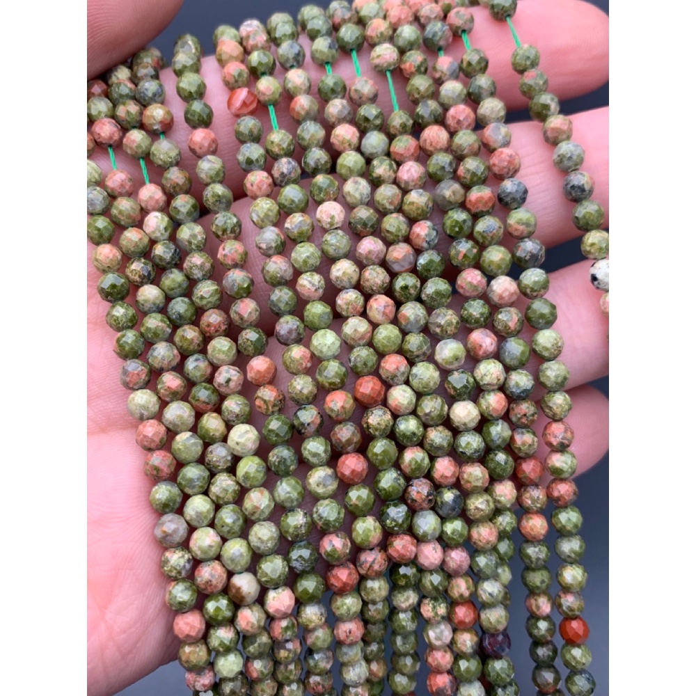 Каменные бусины, Унакит, огранка, шарик 4 мм, длина нити 38 см