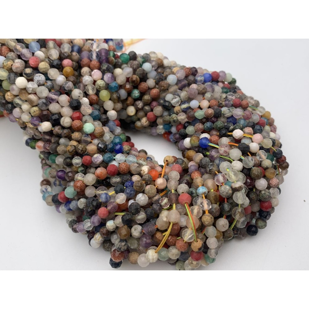 • Каменные бусины, Весенний микс, шарик огранка, 4 мм, длина нити 38 см