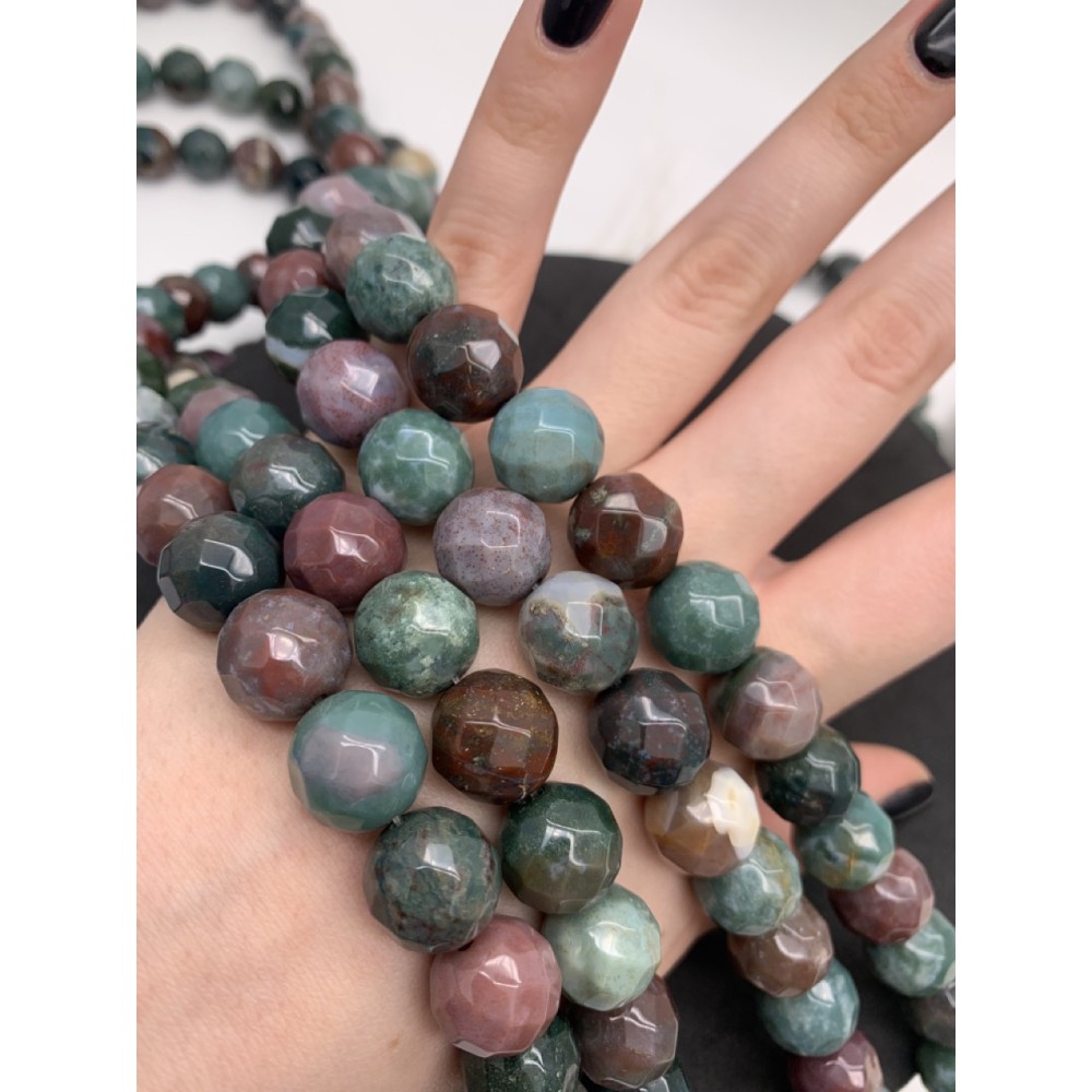 Теги: Каменные бусины, Яшма, зелёная, индийская, шарик огранка, 13, 7 мм, длина нити 38 см, 20150, Бусины в огранке