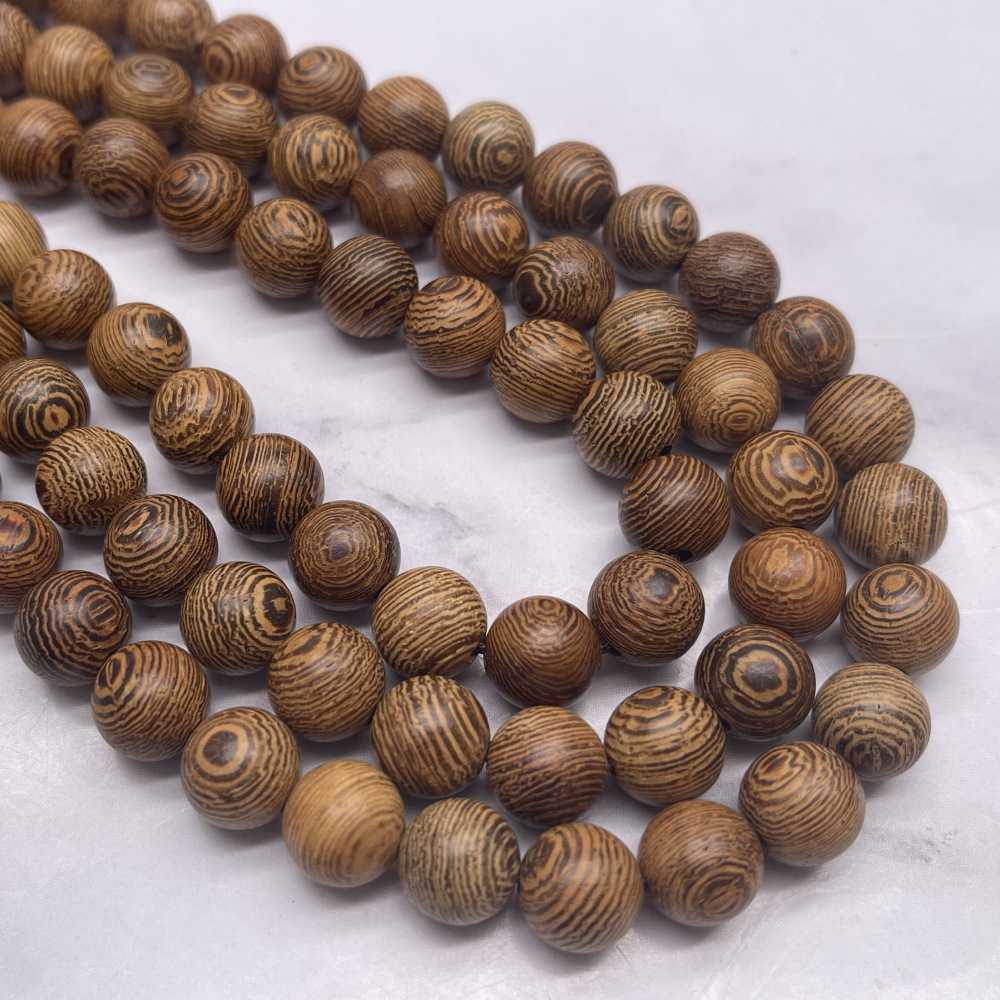 • Деревянные бусины, коричневый с полосками, шарик, 10 мм, длина нити 38 см