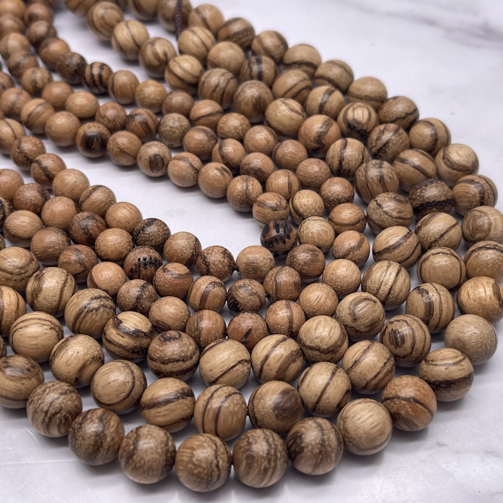 Деревянные бусины, с полосками, шарик, 7,6-8 мм, длина нити 38 см 0 220 ₽