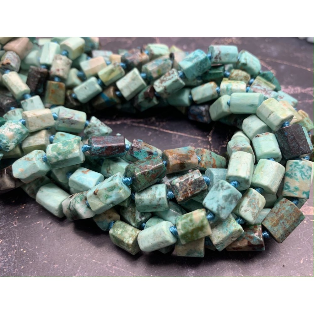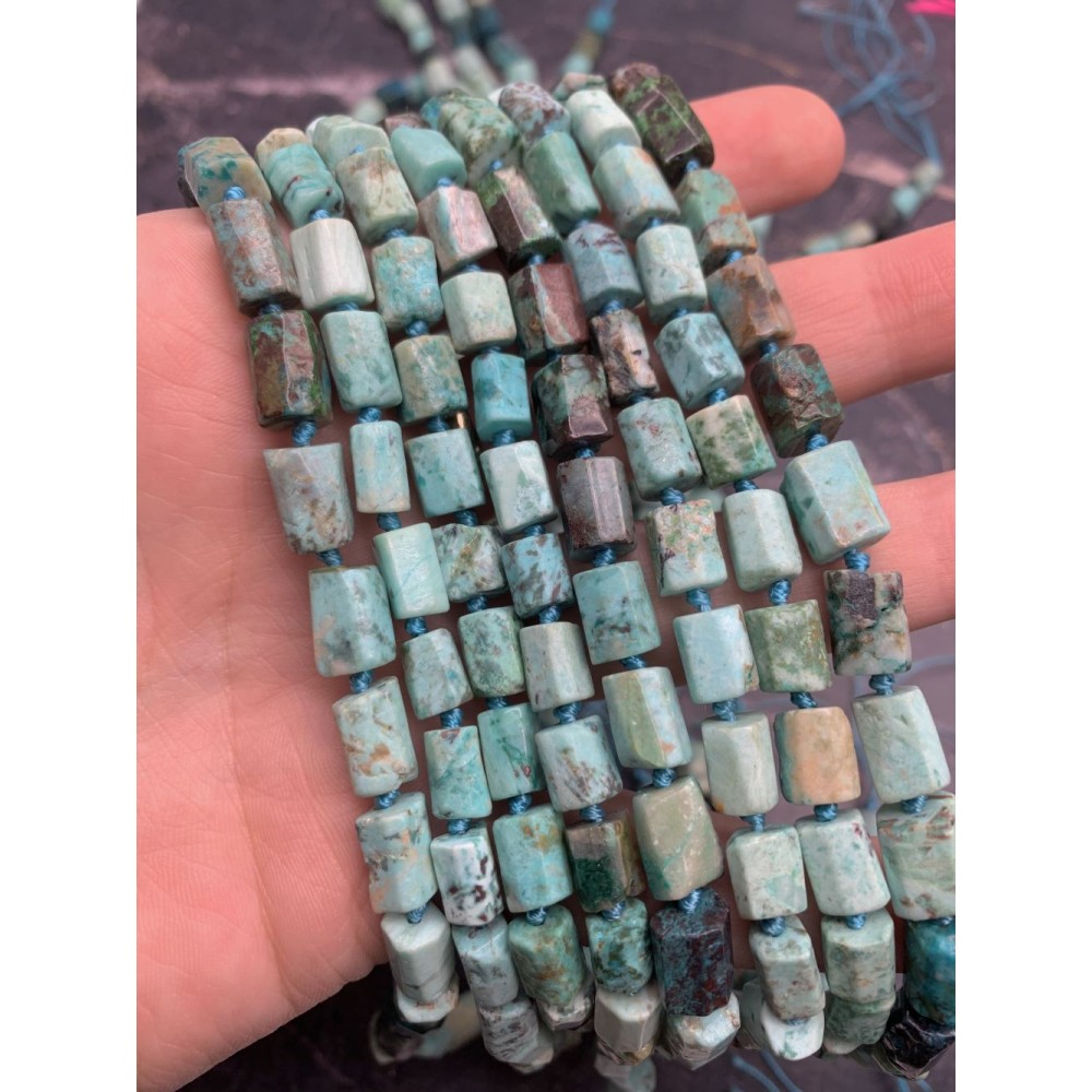 Каменные бусины, Африканская бирюза, не обработанная, столбики, 10х7 мм, длина нити 38 см