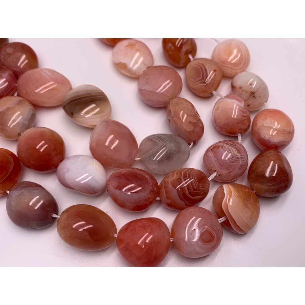 Каменные бусины, Агат Ботсвана, персиковый, фриформы, размер 22-24 мм, длина нити 38 см