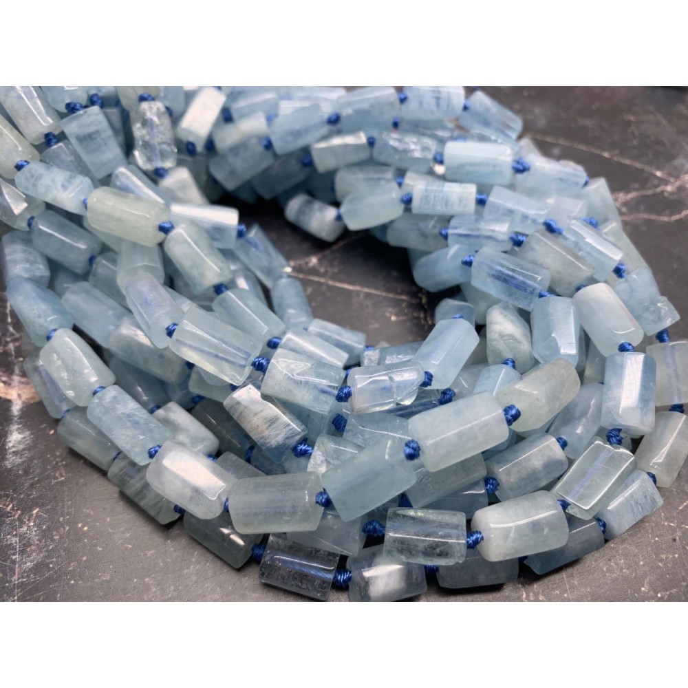 • Каменные бусины, Аквамарин, Голубой Берилл, не обработанный, столбики, 12х7 мм, длина нити 38 см
