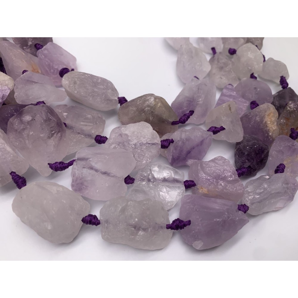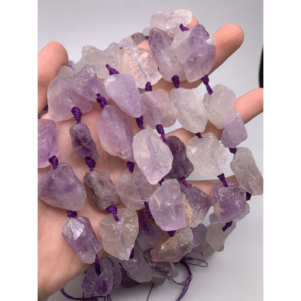 • Каменные бусины, Аметист лавандовый , не обработанный, фриформы, 20-28 мм, длина нити 19 см, 7 шт