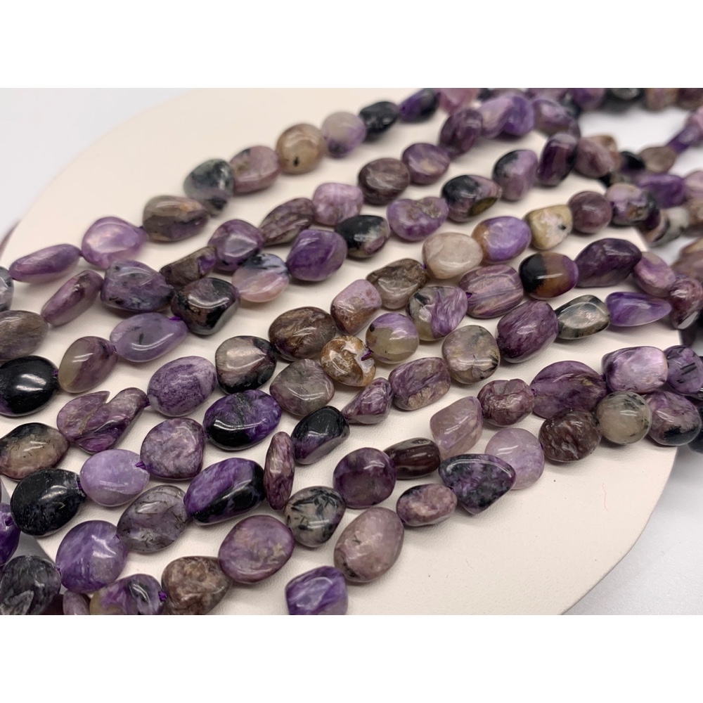 Каменные бусины, Чароит, фриформы, 9х6 мм, длина нити 38 см