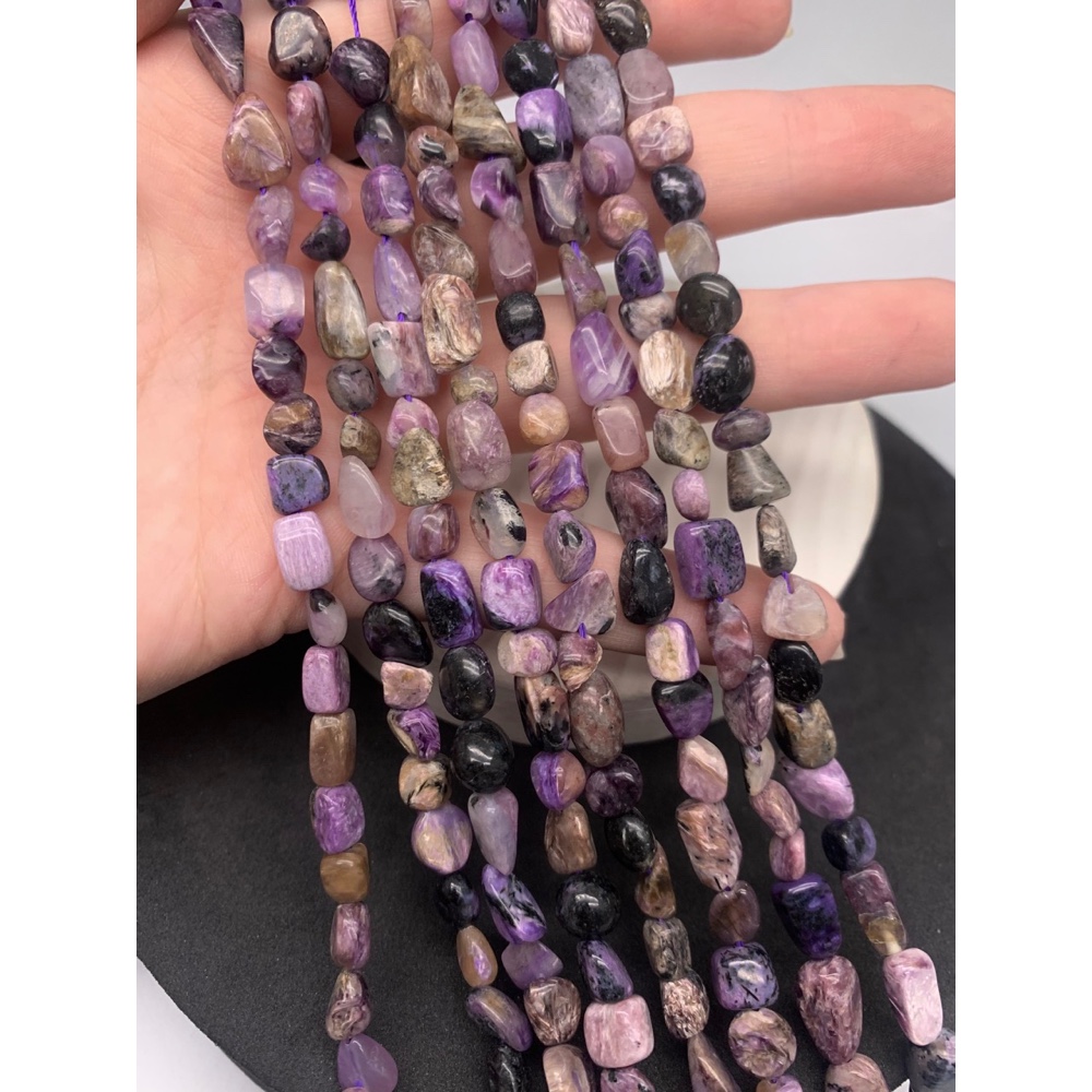 Каменные бусины, Чароит, фриформы, 9х7 мм, длина нити 38 см