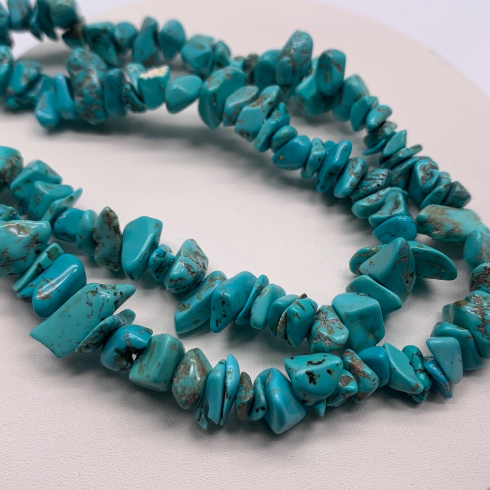 • Каменные бусины, Говлит натуральный (т.н. Кахолонг), ярко голубой, фриформы, 7х4 мм, длина нити 78 см