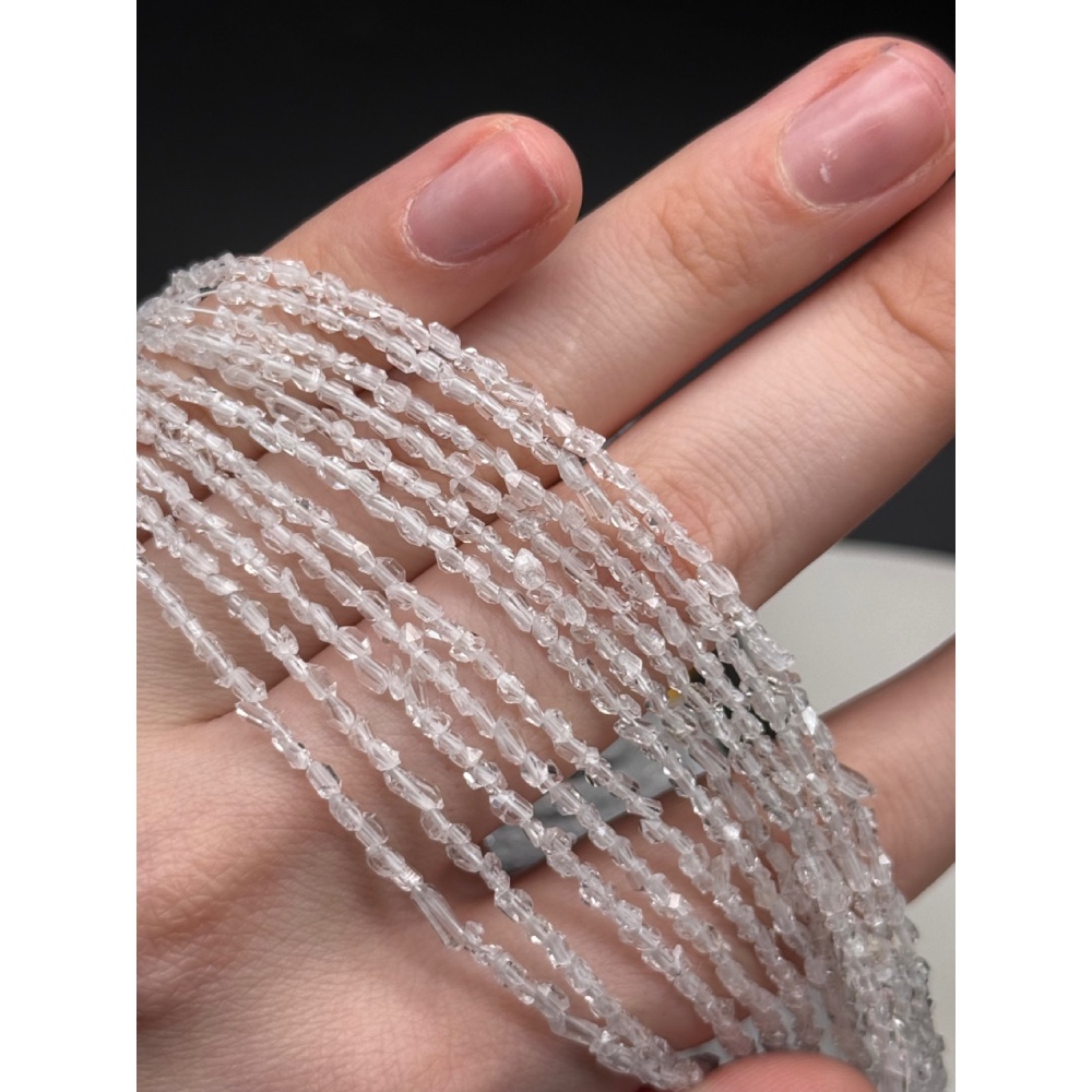 Теги: Каменные бусины, Херкимерский алмаз, (Двухвершинный кристалл горного хрусталя), люкс, размер 3х2 мм, длина нити 38 см, 20996, Фриформы Свободные формы
