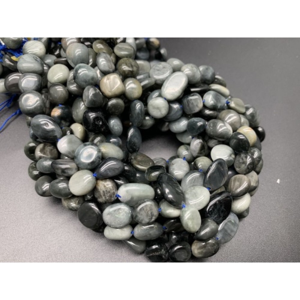 • Каменные бусины, Хризоберилл, Кошачий глаз, серый, фриформы, 11х7 мм, длина нити 38 см