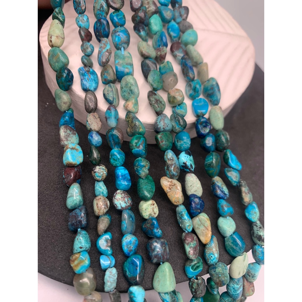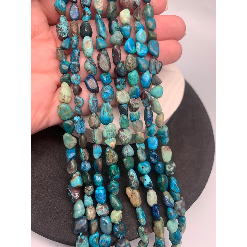 Каменные бусины, Хризоколла, фриформы, 8х6 мм, длина нити 38 см