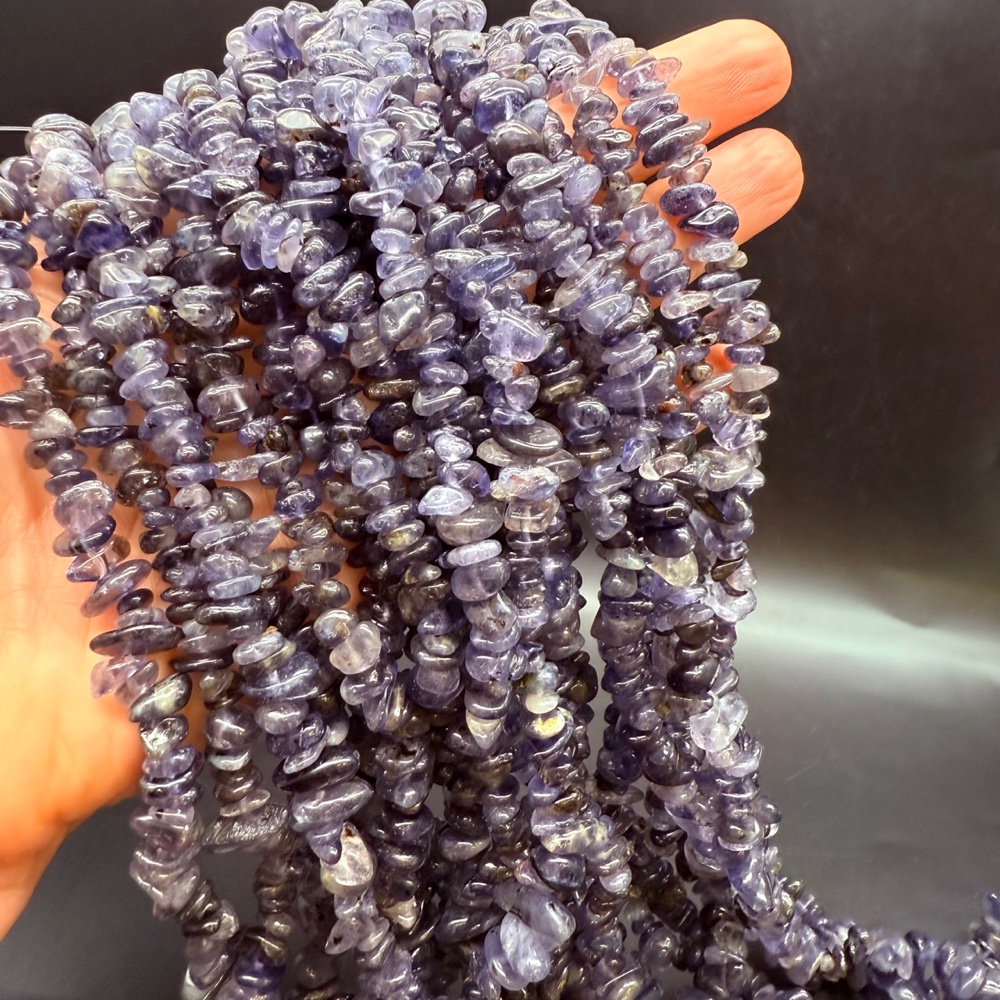 Каменные бусины, Иолит (Водяной Сапфир), крошка, фриформы, 8x5 мм, нить 78 см