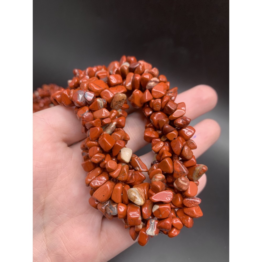 Каменные бусины, Яшма, красная, фриформы, 9х5 мм, длина нити 78 см
