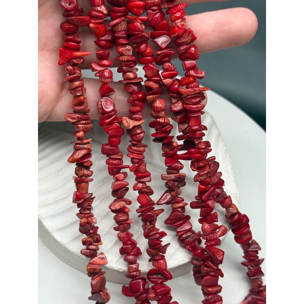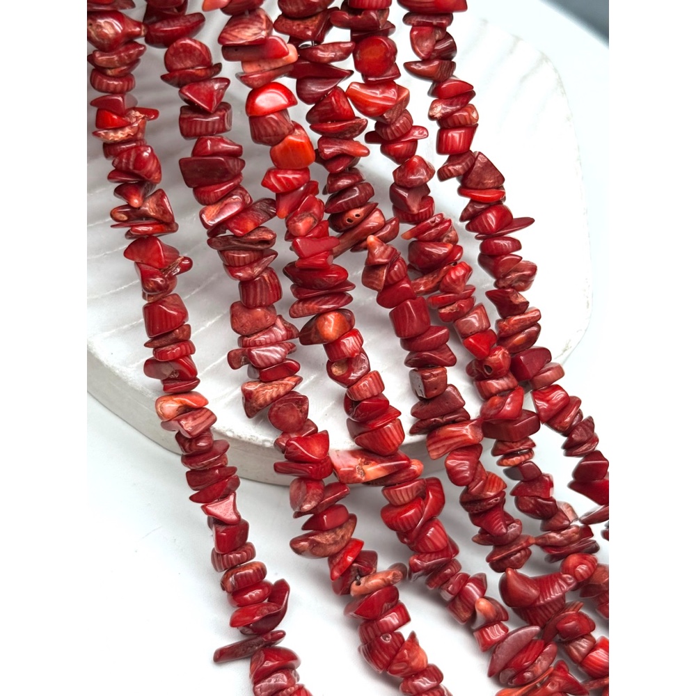 Каменные бусины, Коралл красный, тонированный, фриформы, 8х3 мм, длина нити 78 см