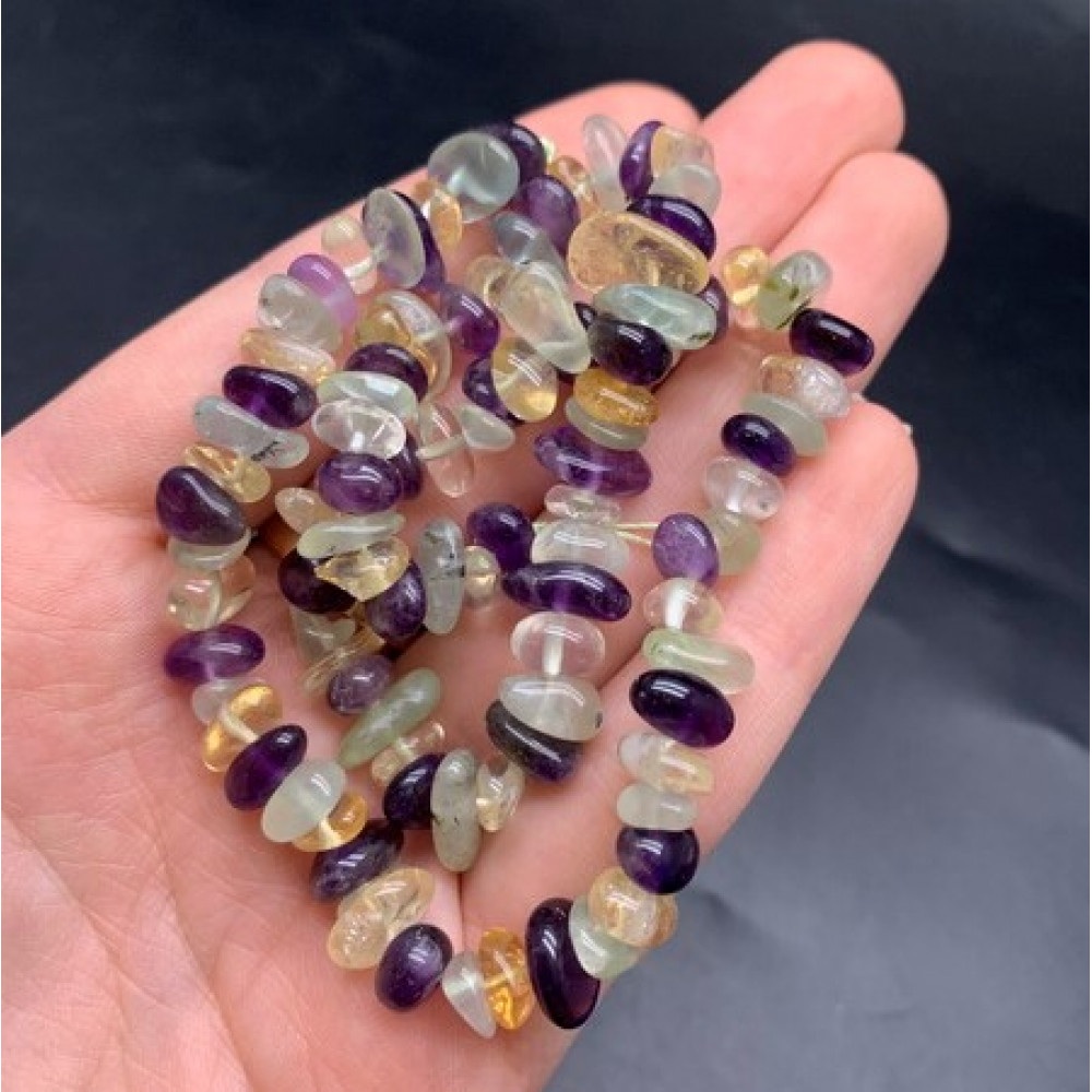 Каменные бусины, Кварцевый Микс (цитрин, аметист, пренит), фриформы, 9х4 мм, длина нити 38 см