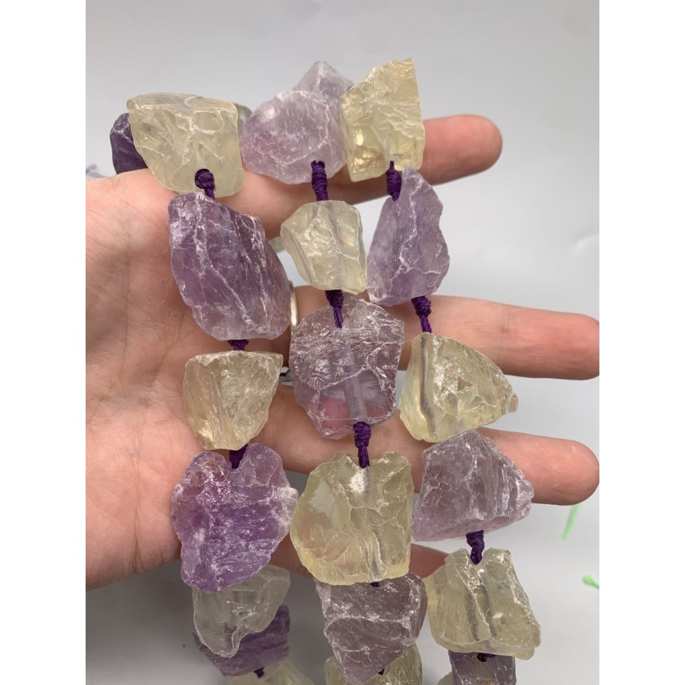 Каменные бусины, Лавандовый аметист, Лимонный кварц, не обработанный, фриформы, 20-28 мм, длина нити 19 см, 7 шт