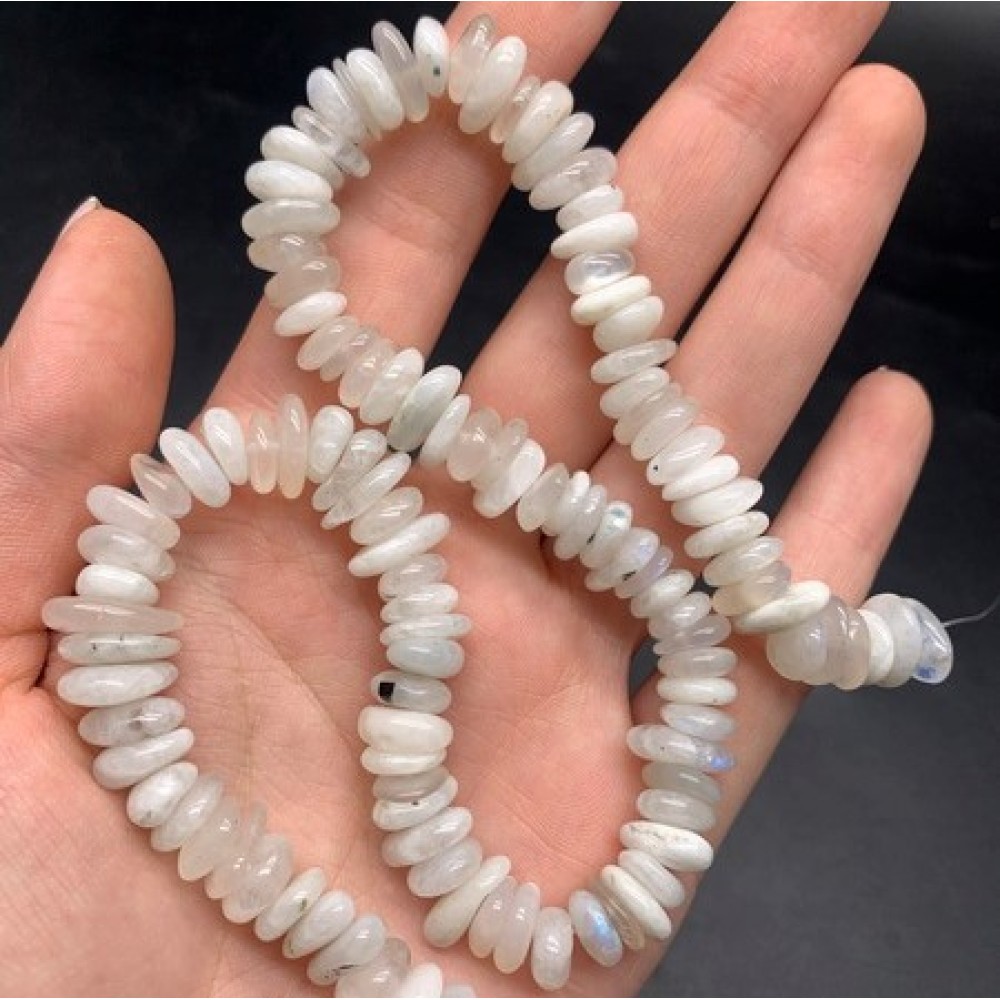 • Каменные бусины, Лунный камень, фриформы, 11х4 мм, длина нити 38 см