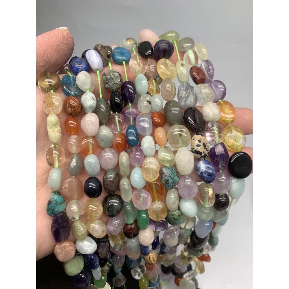 • Каменные бусины, Микс камней, фриформы, 14х10 мм, длина нити 38 см